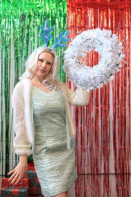 Vintage 1960s Seafoam Green and Silver Lurex Sleeveless Party Dress, Small
