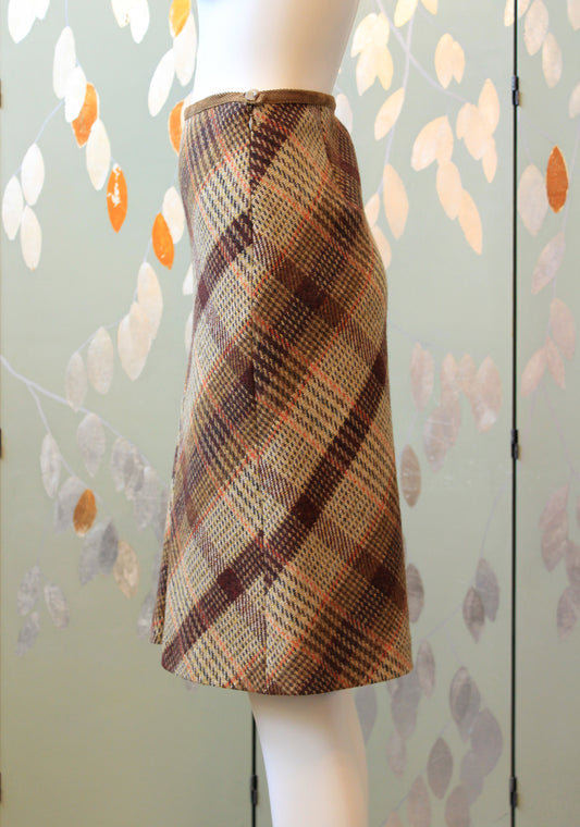 1980s/1990s Max Mara Beige And Brown Plaid Knee Length Skirt, Small