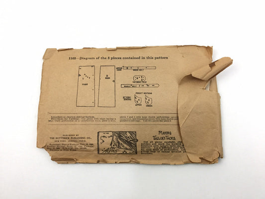 Antique Late-1910s Collared Blouse Sewing Pattern, Butterick 3035, Complete