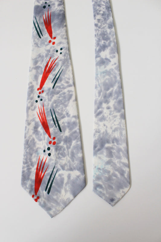 1940s Hand Painted Rayon Necktie, Abstract Print
