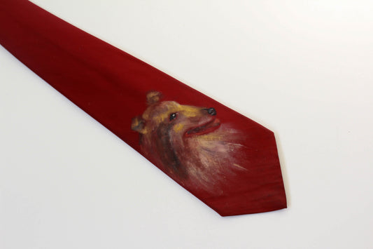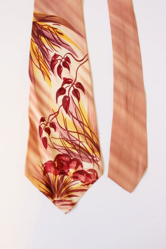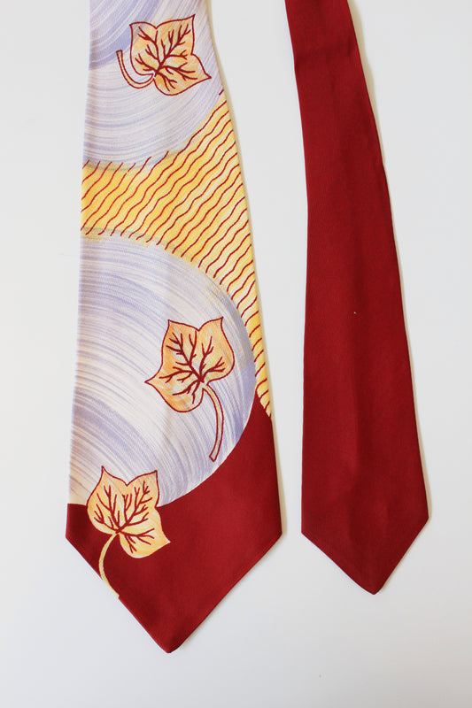 Vintage Late 1940s Burgundy And Mustard Leaf Hand-Painted Tie