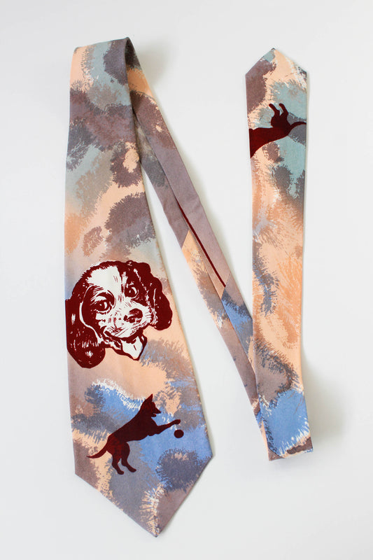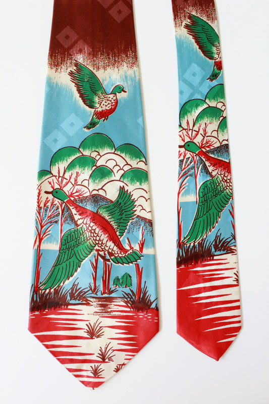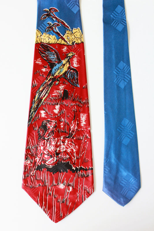Vintage 1940s Rayon Tie With Bird And Dog Design