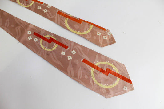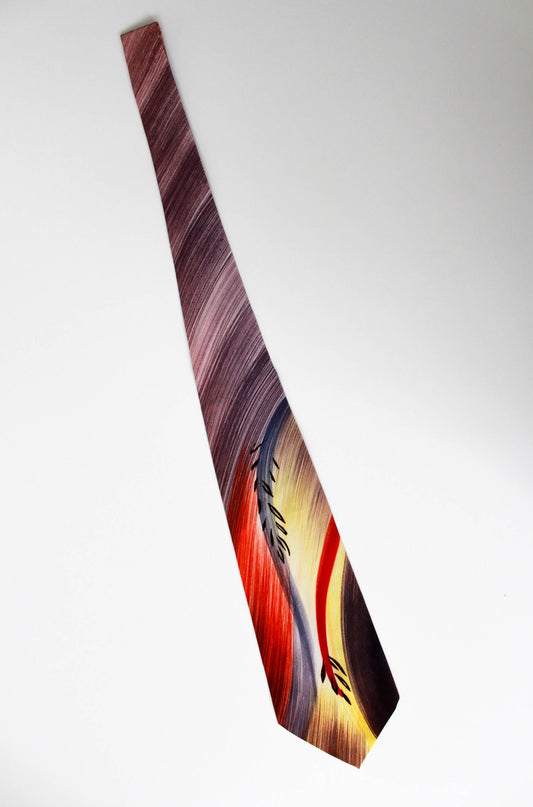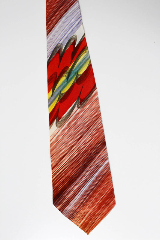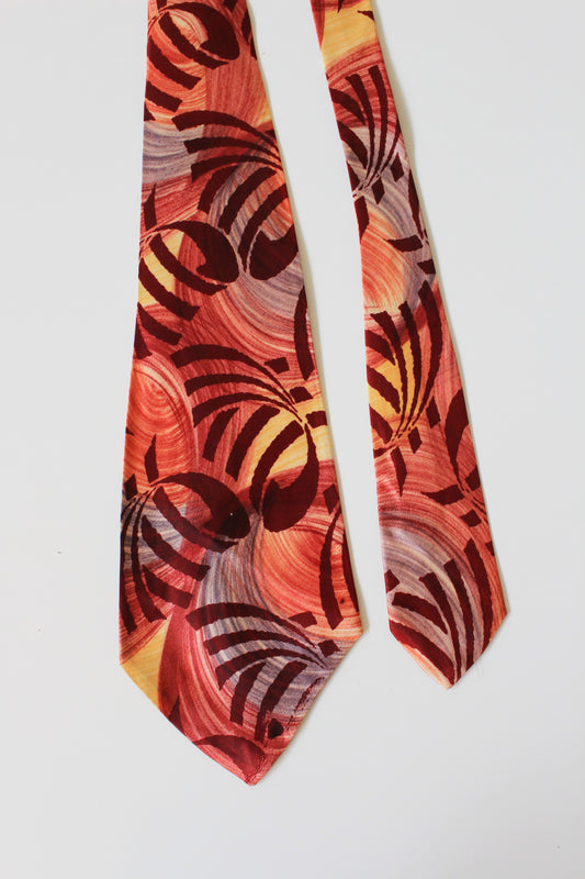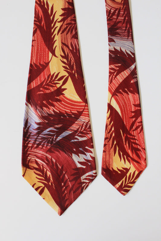 Vintage 1940s Red/Orange/Yellow Sunset Leaf Abstract Dead Stock Rayon Tie