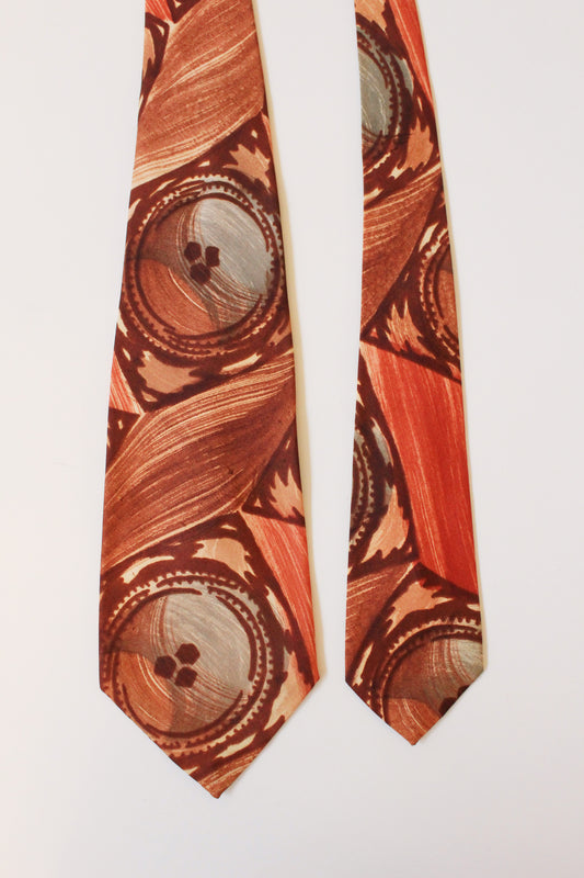 Vintage 1940s Brown And Warm Tone Button Design Rayon Tie