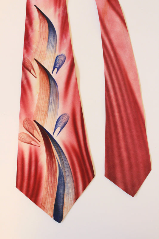 Vintage Late 1940s Grey And Coral Leaf Dead Stock Abstract Tie