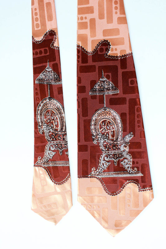 1940s Ornate Chair and Lamp Print Rayon Necktie