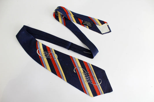 1940s Bold Look Rayon Necktie, Blue Red Yellow Stripe