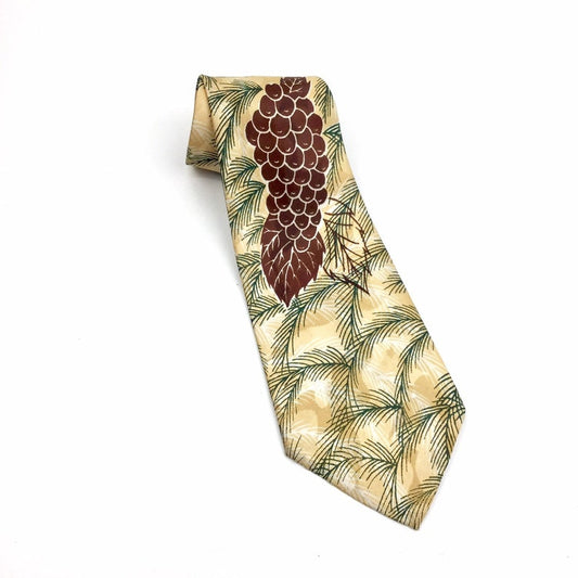 1940s Pine Tree/Berry Print Rayon Necktie by Park Lane