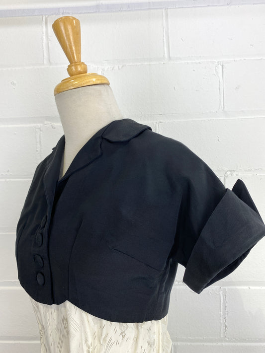 Vintage 1950s Black Cropped Short-Sleeve Jacket, Small