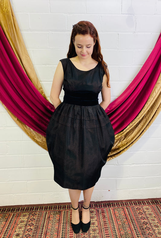 Vintage 1950s Black Velour Cocktail Dress, Medium
