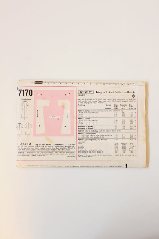 1960s Wide Sleeve Dress Simplicity 7170 Sewing Pattern, Uncut, Size 16-20