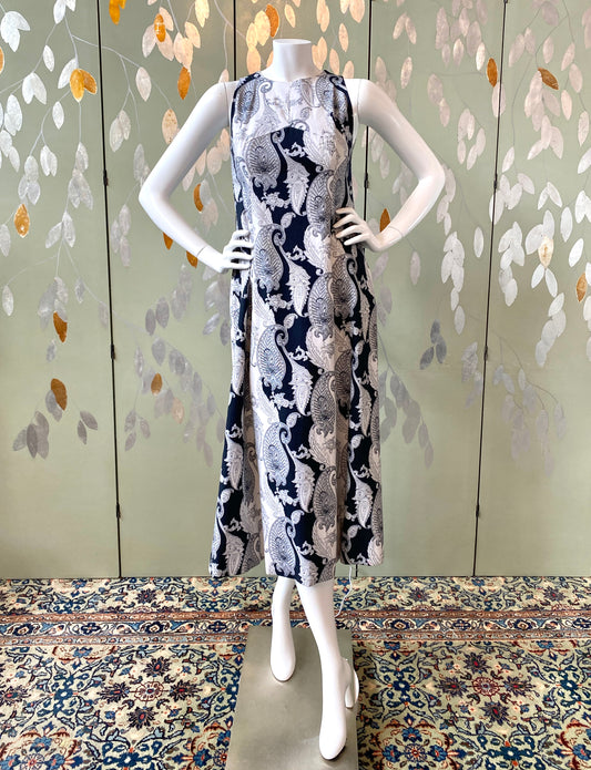 Vintage 1970s Navy & White Paisley Maxi Dress, Small