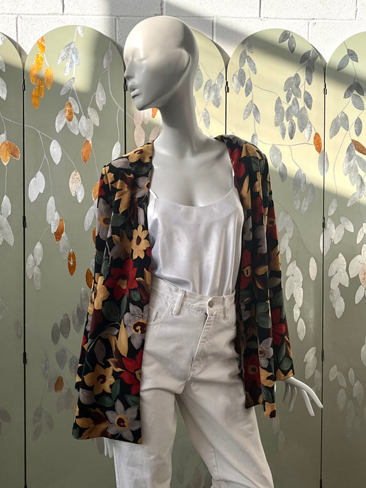 Vintage 1990s Black Floral Sheer Rayon Dress, M/L