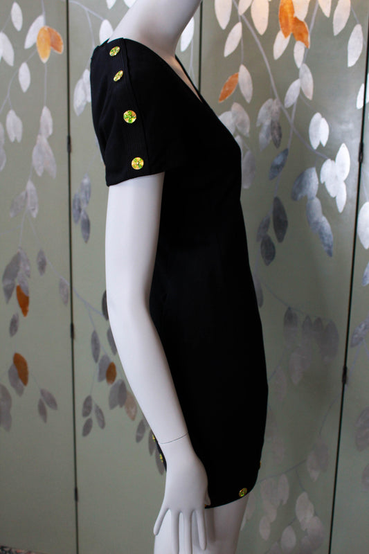 Vintage 1990s Black & Pink Floral Embroidery Dress, B40"