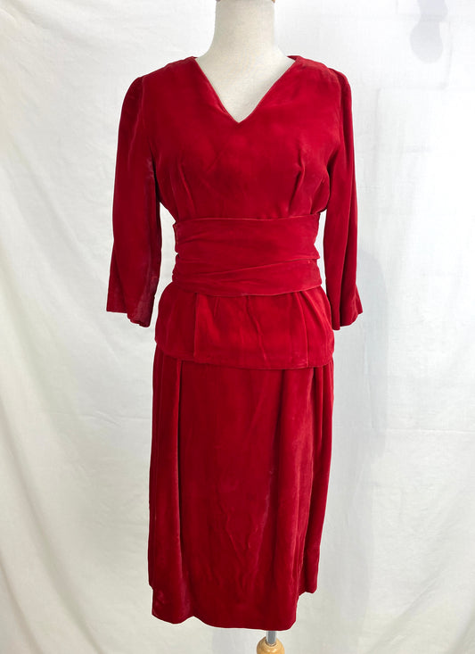 Vintage Deadstock 1960s French Designer Knit Wool 2-Piece Skirt Suit, Small