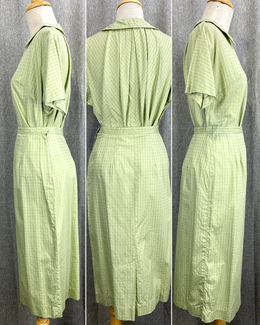 Vintage 1960s 2-Piece Green Cotton Skirt & Blouse Set, Small