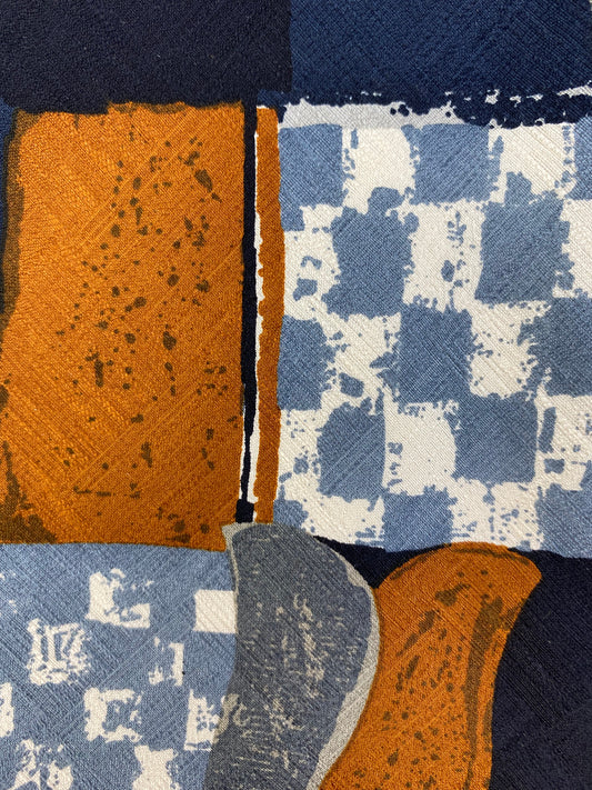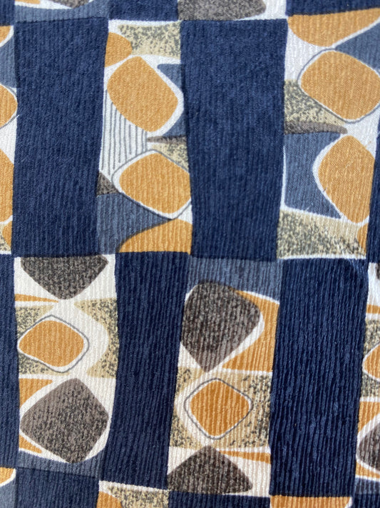 90s Deadstock Silk Necktie, Men's Vintage Navy/ Blue/ Copper Check Tulip Pattern Tie, NOS