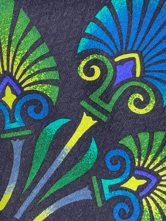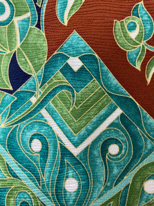 90s Deadstock Silk Necktie, Men's Vintage Blue/ Green Polynesian Tiki Pattern Tie, NOS