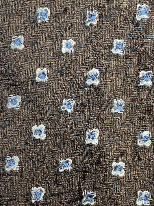 90s Deadstock Silk Necktie, Men's Vintage Brown Blue Dainty Floral Pattern Tie, NOS