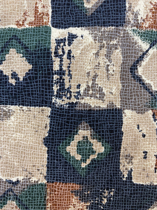 90s Deadstock Silk Necktie, Men's Vintage Taupe/ Blue/ Green Abstract Geometric Pattern Tie, NOS