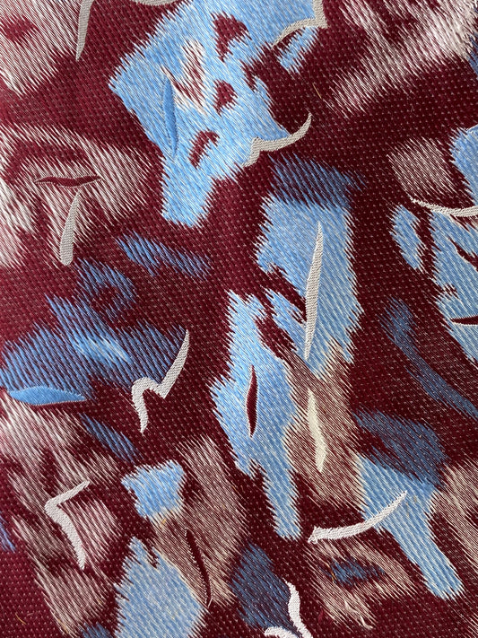 90s Deadstock Silk Necktie, Men's Vintage Wine & Blue Abstract Pattern Tie, NOS