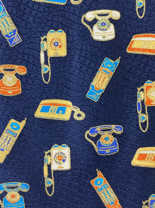 90s Deadstock Silk Necktie, Men's Vintage Navy Metallic Novelty Telephone Print Tie, NOS