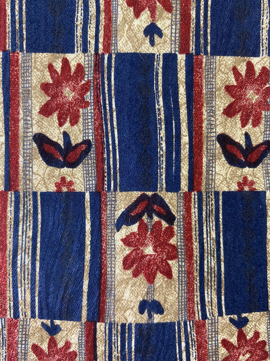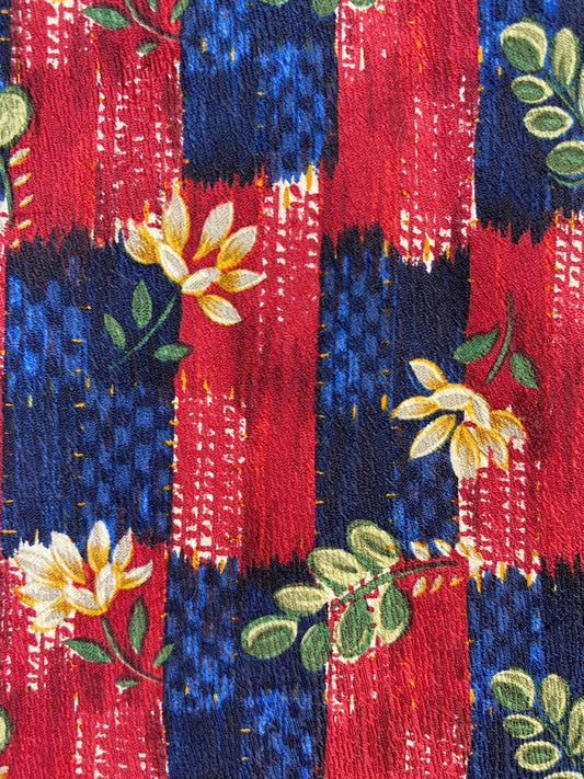 90s Deadstock Silk Necktie, Men's Vintage Blue Red Floral Pattern Tie, NOS