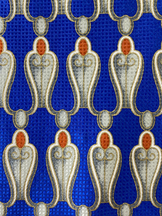 90s Deadstock Silk Necktie, Men's Vintage Blue/Silver/Gold Art Deco Pattern Tie, NOS