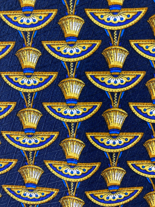 90s Deadstock Silk Necktie, Men's Vintage Blue Gold Art Deco Pattern, NOS