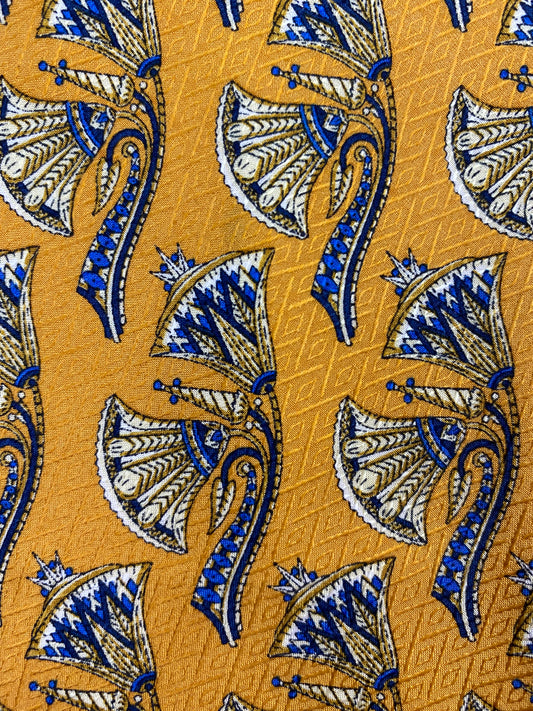 90s Deadstock Silk Necktie, Men's Vintage Gold/ Blue Asian Pattern Tie, NOS