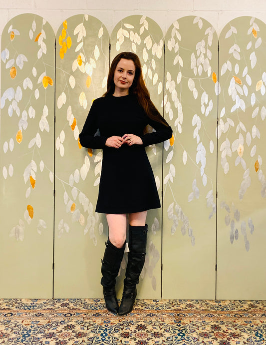 Vintage 1990s Deadstock Versus Versace Black Wool Dress, Original Tags, S-M