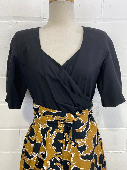 Vintage 1980s Guy Laroche Horse Print Cotton Cocktail Dress, Small