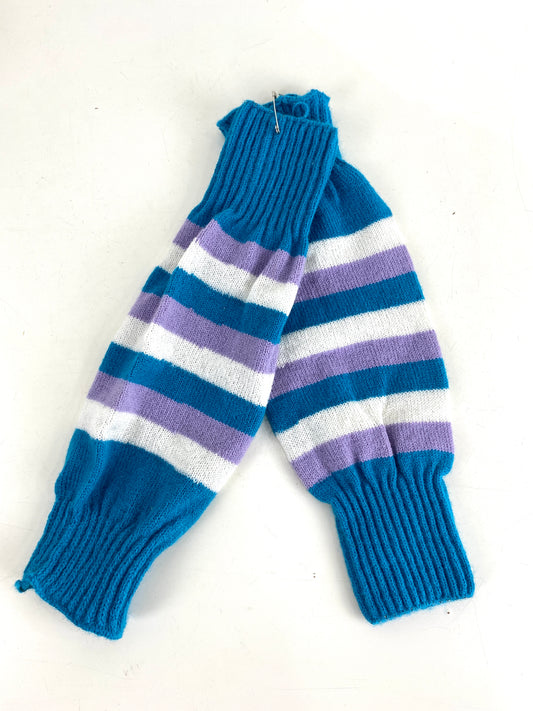 1980s Vintage Deadstock Acrylic Knit Leg Warmers, Blue/ Purple Stripe, NOS