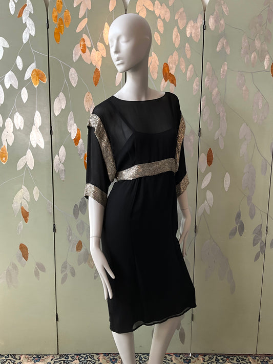 Vintage 1980s Chloé Black Silk Beaded Jacket Top and Dress Set, Medium