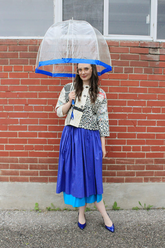 Vintage 1980s Laurèl by Escada Two Tone Blue Full Gathered Cotton Skirt, Small