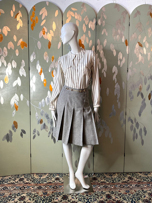 Vintage 1970s Celine Pleated Grey Wool Skirt, Small