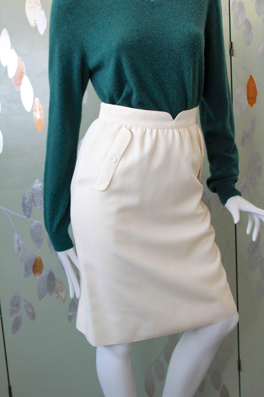 1980s Courrèges Cream Wool Skirt, Waist 26"