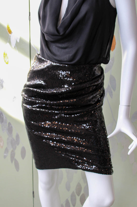 Donna Karan Black Sequinned Skirt, Small
