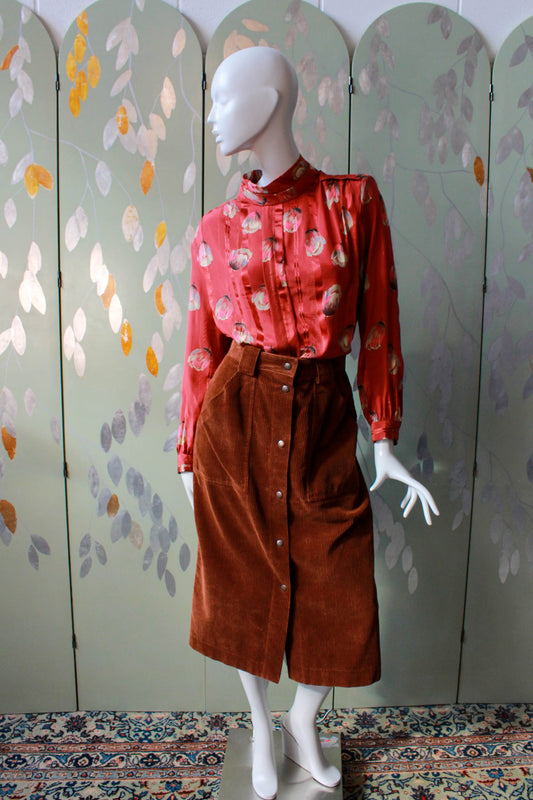 1980s Krizia Brown Corduroy Skirt, Waist 30"