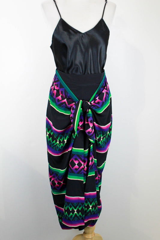 Vintage 1990s Byblos Black and Pink Print Silk Sarong Skirt, Small