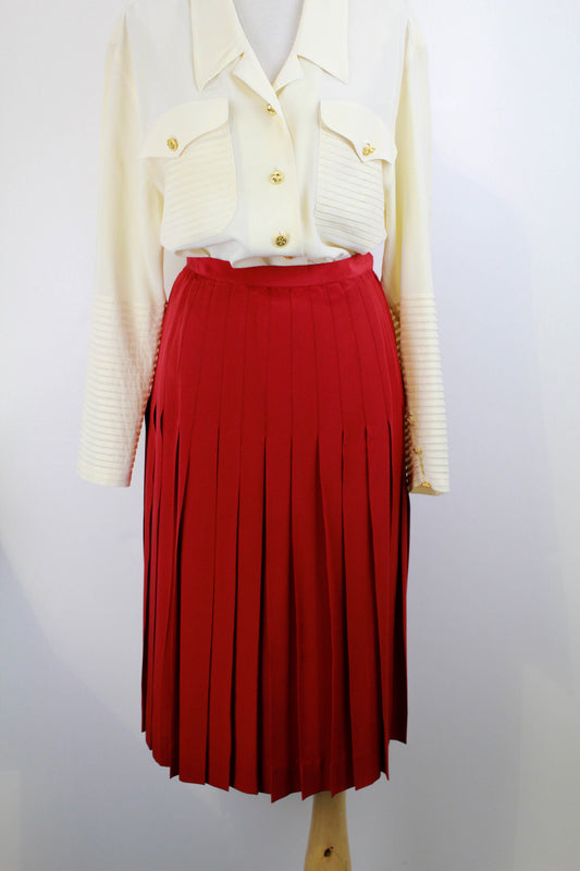 Vintage 1980s Vintage Chanel Red Silk Pleated Skirt, Small