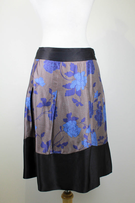 Vintage 1990s Alexander McQueen Silky Blue Rose Print Skirt, W29