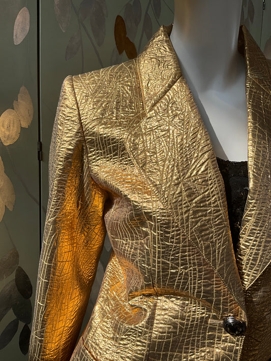 Vintage Deadstock 1980s Yves Saint Laurent Variation Gold Textured Blazer, Small