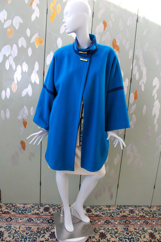 Vintage 1980s Guy Laroche Blue Wool Wide Sleeve Coat, Large