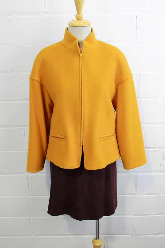 Vintage 1980s Guy Laroche Yellow Ochre Wool Cashmere Jacket, Large