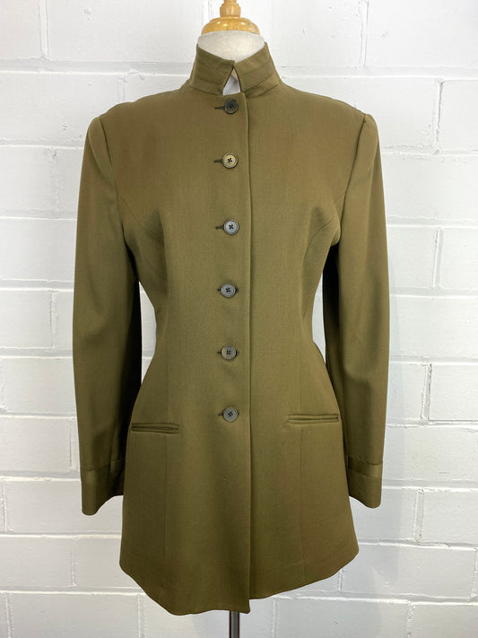 Vintage 1990s Norma Kamali Khaki Wool Jacket, Medium
