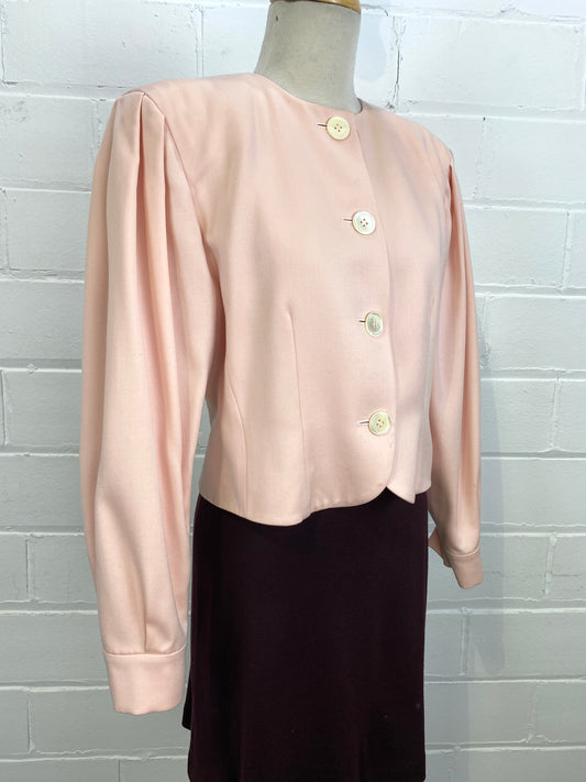 Vintage 1980s Perry Ellis Pink Wool Bolero Style Jacket, Medium