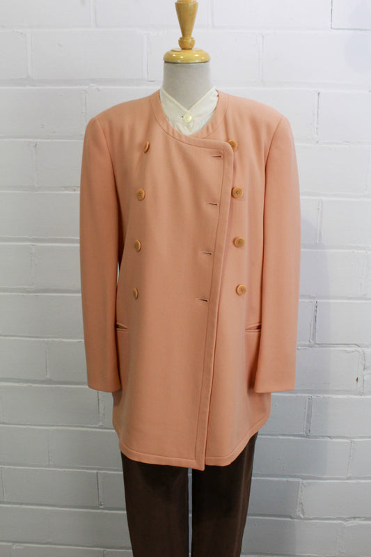 Vintage 1990s Giorgio Armani Peach Wool Blazer Jacket, Medium