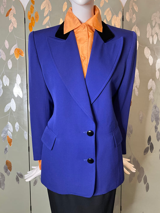 Vintage 1980s Blue Wool Guy Laroche Skirt Suit, Medium
