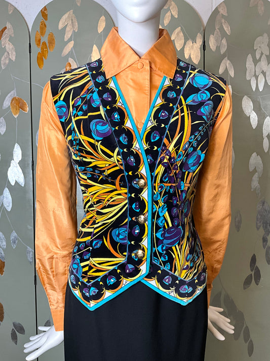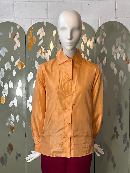 Vintage 1970s Emilio Pucci Peach Orange Silk Shirt, Medium